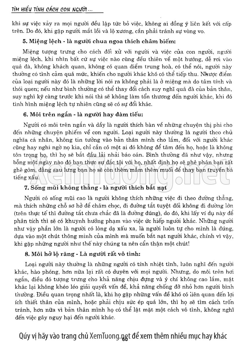 Sách "Tìm Hiểu Tính Cách Con Người Qua Khuôn Mặt" giới thiệu những kiến thức đã được tổng hợp qua kinh nghiệm của nghiều thế hệ. Các câu ca dao, tục ngữ nói về khuôn mặt của người xưa là những đánh giá tính cách tương ứng đều khá đúng với thực tế. Để đúc kết được những kiến thức này, nhiều lớp người đi trước đã trải qua, thậm chí phải trả giá bằng thực tiễn.