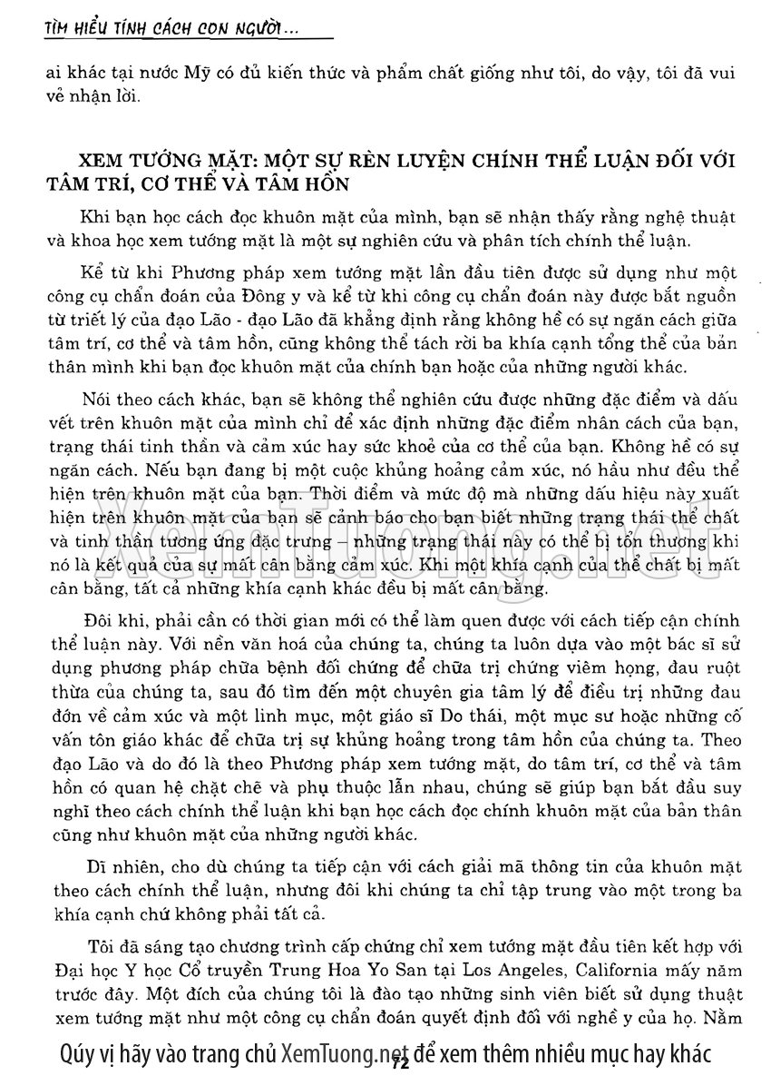 Sách "Tìm Hiểu Tính Cách Con Người Qua Khuôn Mặt" giới thiệu những kiến thức đã được tổng hợp qua kinh nghiệm của nghiều thế hệ. Các câu ca dao, tục ngữ nói về khuôn mặt của người xưa là những đánh giá tính cách tương ứng đều khá đúng với thực tế. Để đúc kết được những kiến thức này, nhiều lớp người đi trước đã trải qua, thậm chí phải trả giá bằng thực tiễn.
