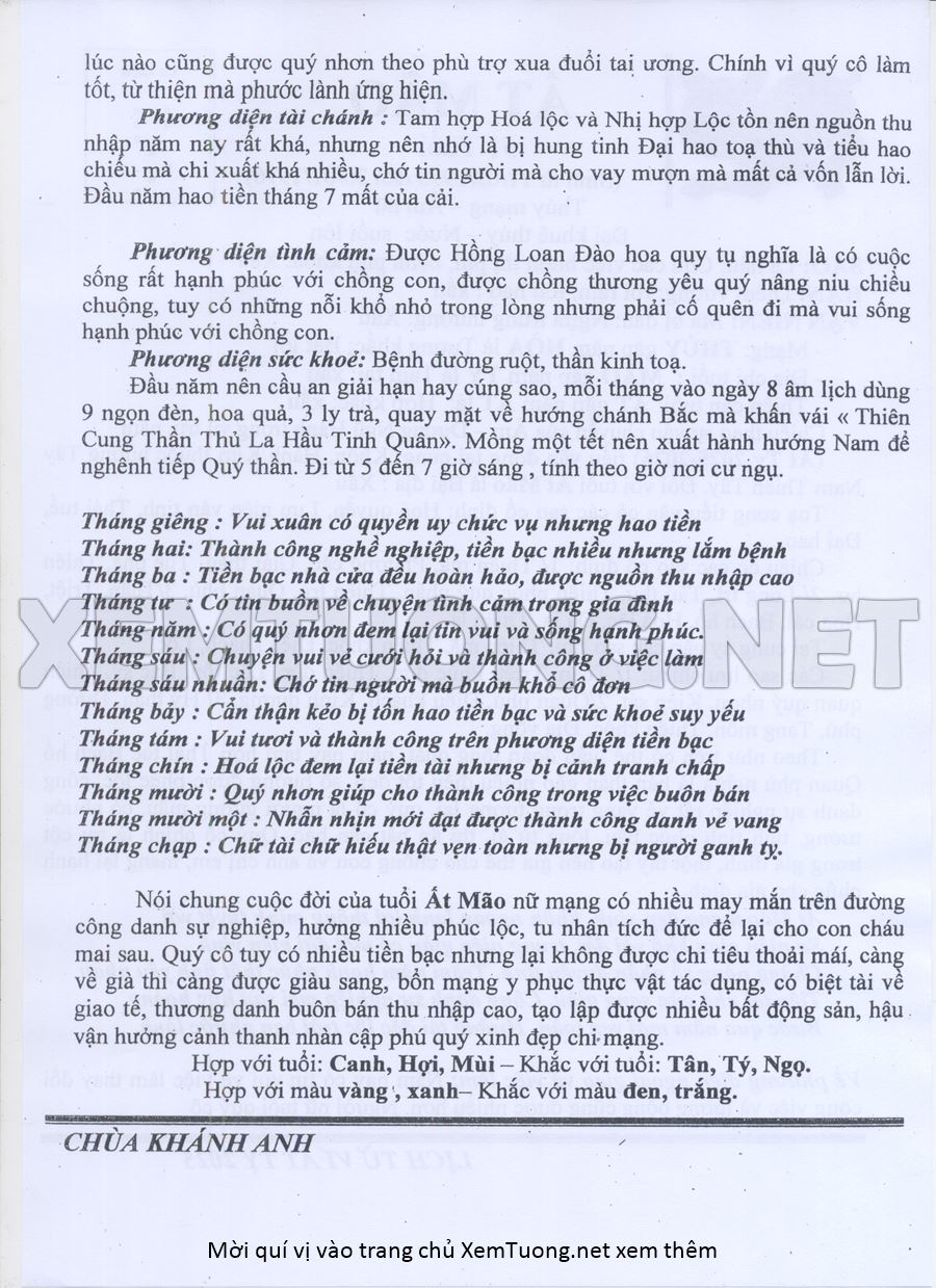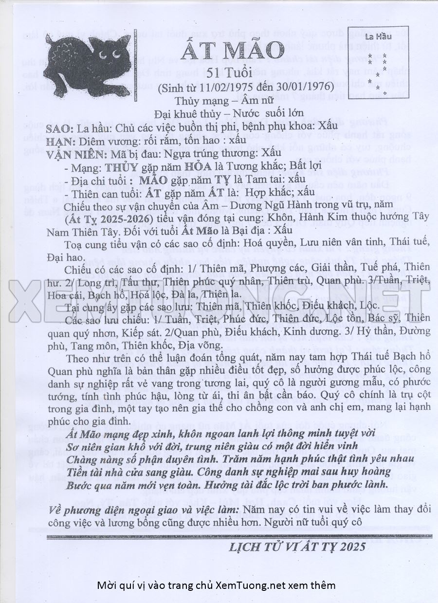 Tử Vi Năm Ất Tỵ 2025 mạng nữ ẤT MÃO