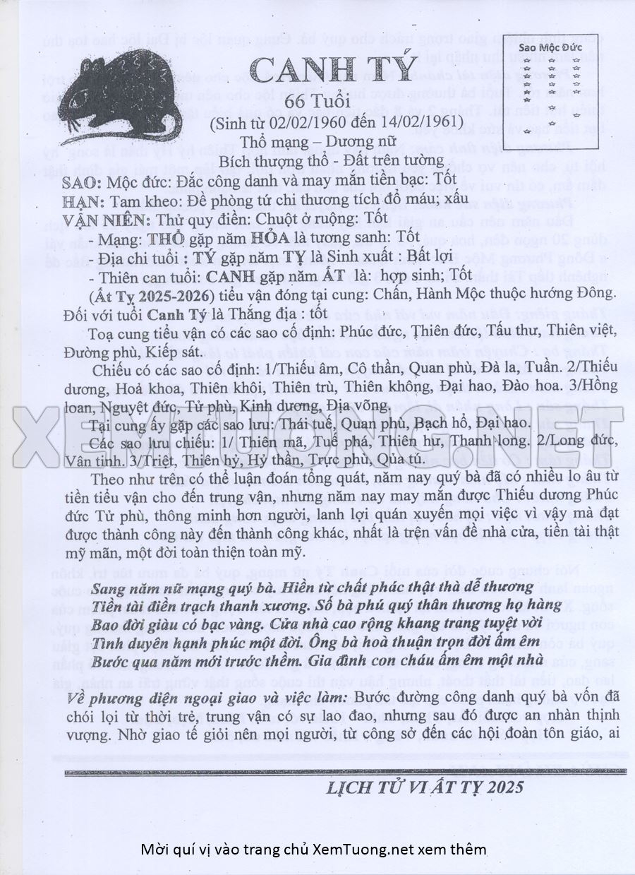 Tử Vi Năm Ất Tỵ 2025 mạng nữ CANH TÝ