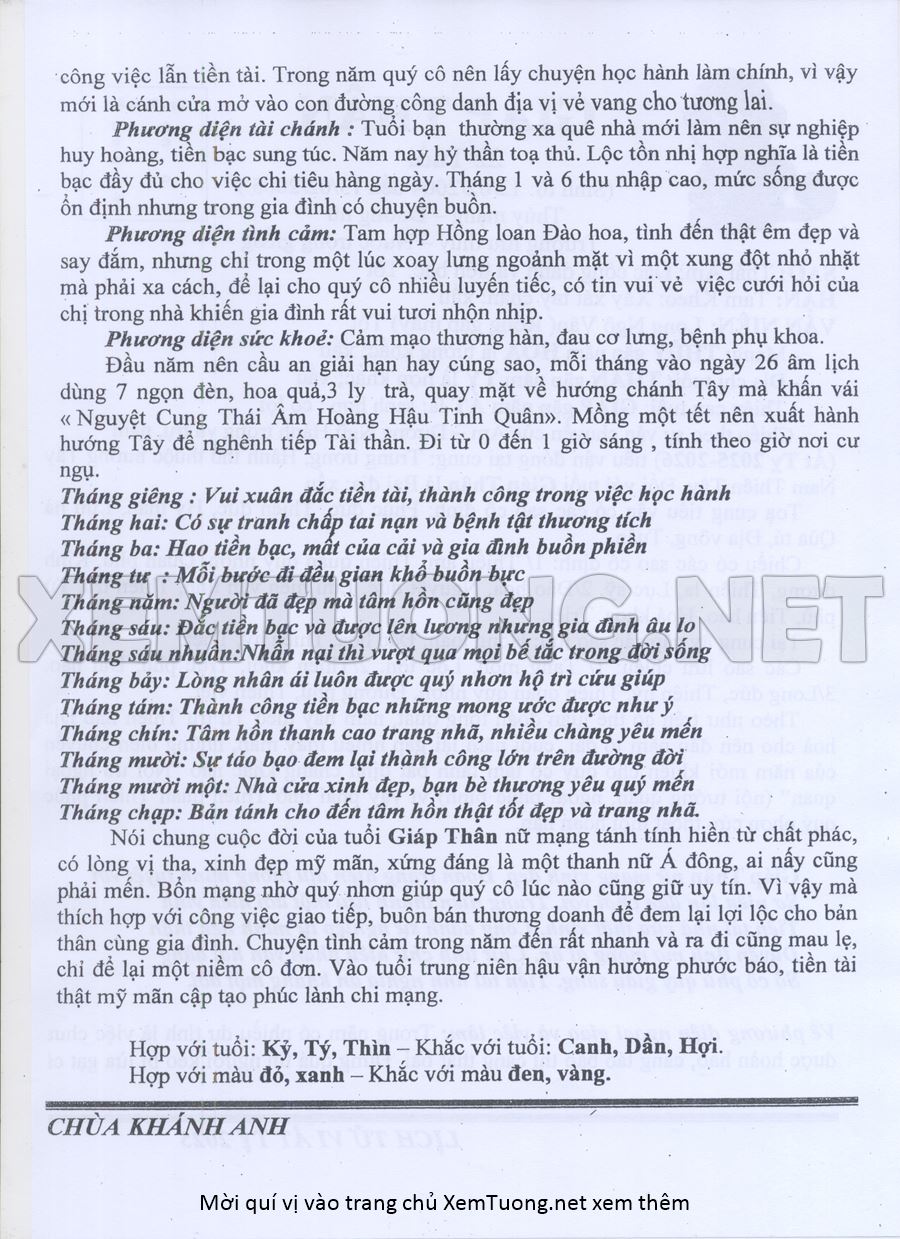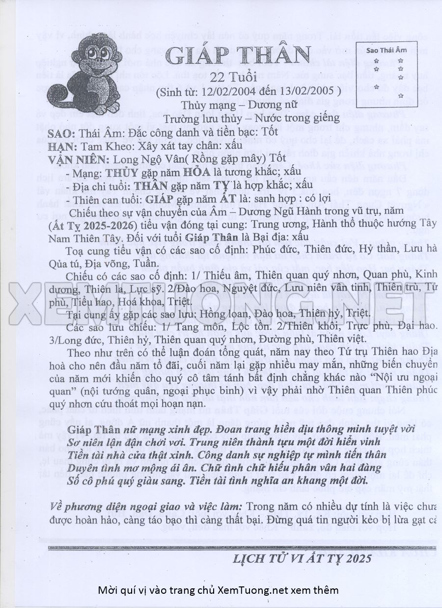 Tử Vi Năm Ất Tỵ 2025 mạng nữ GIÁP THÂN