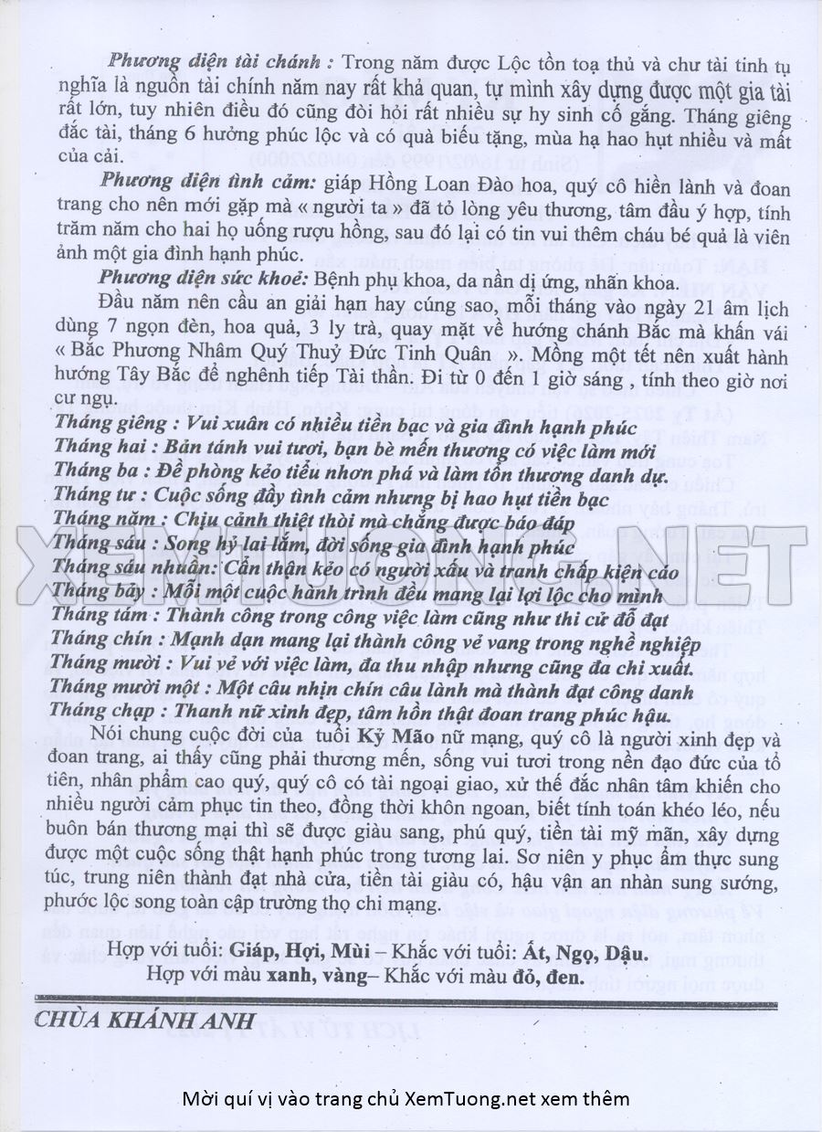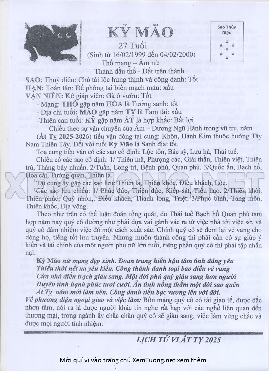 Tử Vi Năm Ất Tỵ 2025 mạng nữ KỶ MÃO