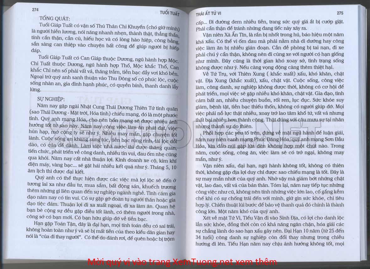(Lưu ý: Thái Ất Tử Vi được chúng tôi scan từ sách, do đó mỗi tuổi sẽ có nhiều trang, quý vị xem xong hãy nhấn vào trang tiếp theo để xem hết phần tuổi muốn xem. Nếu quý vị xem bằng điện thoại thì hãy kéo qua lại để xem phần bị khuất.)