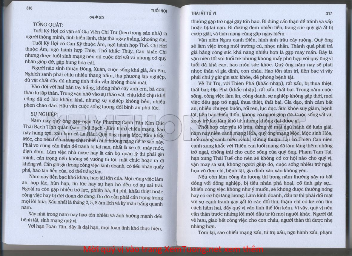 (Lưu ý: Thái Ất Tử Vi được chúng tôi scan từ sách, do đó mỗi tuổi sẽ có nhiều trang, quý vị xem xong hãy nhấn vào trang tiếp theo để xem hết phần tuổi muốn xem. Nếu quý vị xem bằng điện thoại thì hãy kéo qua lại để xem phần bị khuất.)