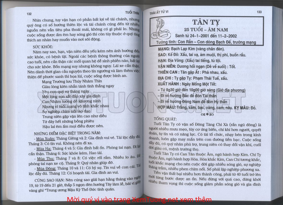 (Lưu ý: Thái Ất Tử Vi được chúng tôi scan từ sách, do đó mỗi tuổi sẽ có nhiều trang, quý vị xem xong hãy nhấn vào trang tiếp theo để xem hết phần tuổi muốn xem. Nếu quý vị xem bằng điện thoại thì hãy kéo qua lại để xem phần bị khuất.)