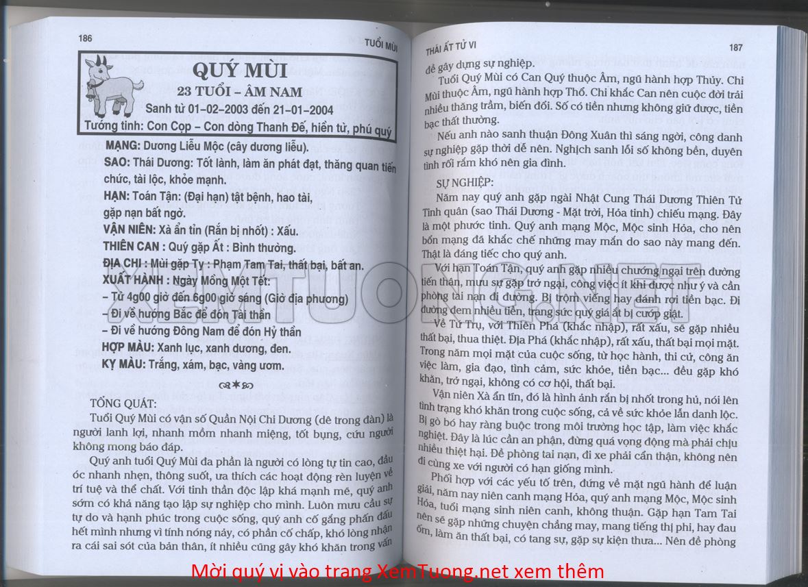 (Lưu ý: Thái Ất Tử Vi được chúng tôi scan từ sách, do đó mỗi tuổi sẽ có nhiều trang, quý vị xem xong hãy nhấn vào trang tiếp theo để xem hết phần tuổi muốn xem. Nếu quý vị xem bằng điện thoại thì hãy kéo qua lại để xem phần bị khuất.)