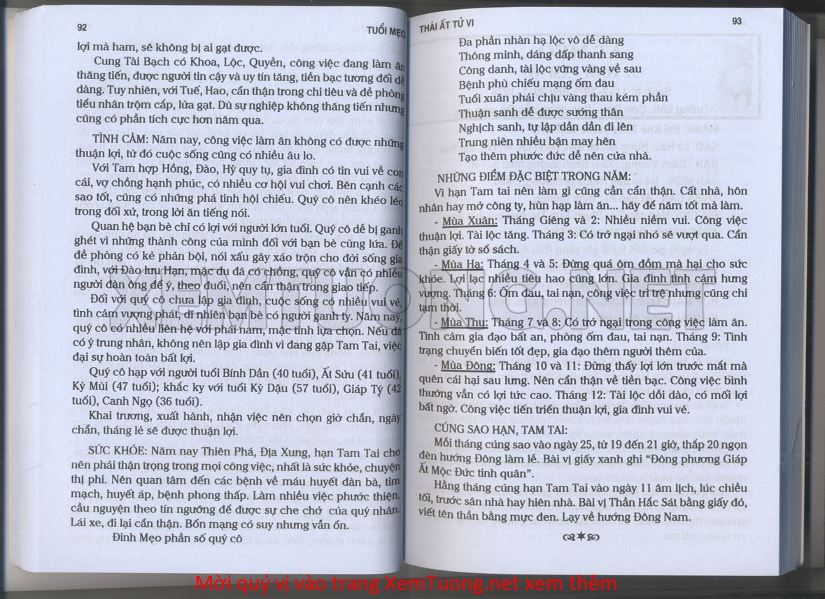(Lưu ý: Thái Ất Tử Vi được chúng tôi scan từ sách, do đó mỗi tuổi sẽ có nhiều trang, quý vị xem xong hãy nhấn vào trang tiếp theo để xem hết phần tuổi muốn xem. Nếu quý vị xem bằng điện thoại thì hãy kéo qua lại để xem phần bị khuất.)