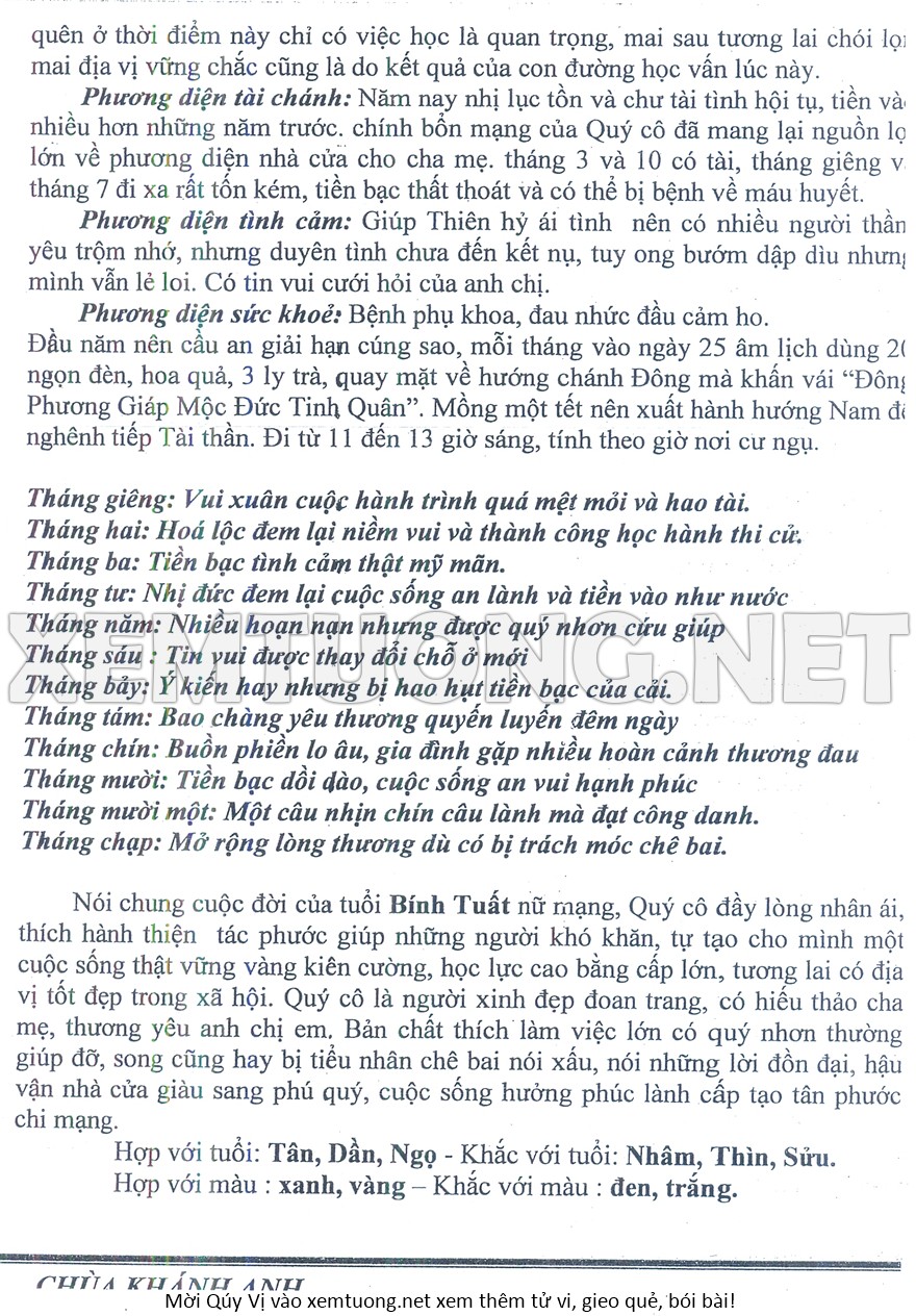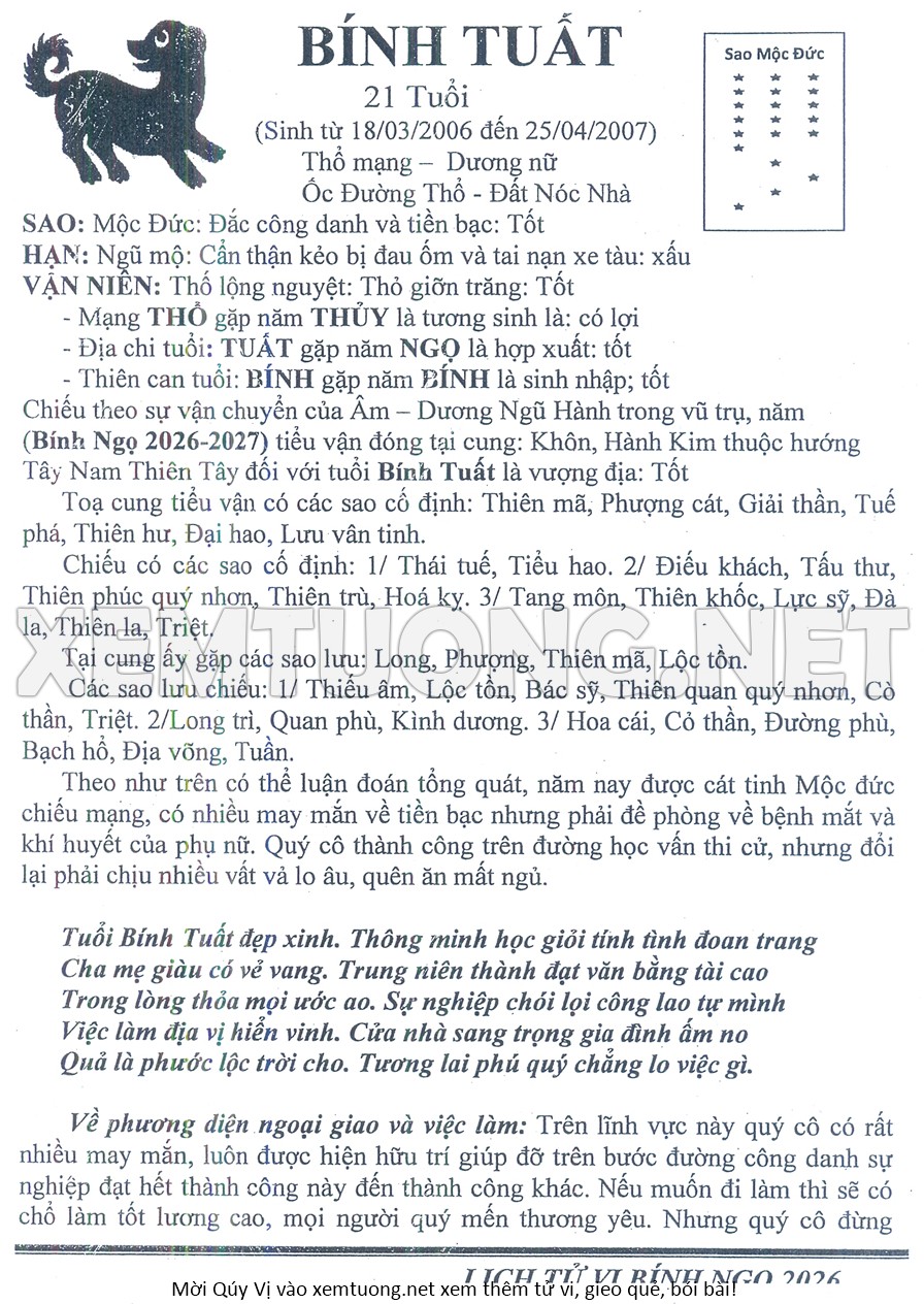 Tử Vi Năm Bính Ngọ 2026 mạng nữ BÍNH TUẤT