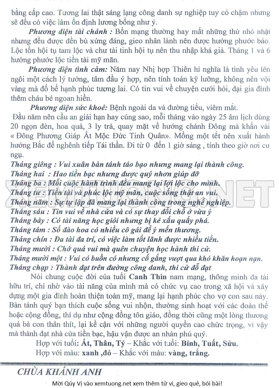 Tử Vi Năm Bính Ngọ 2026 mạng nam CANH THÌN