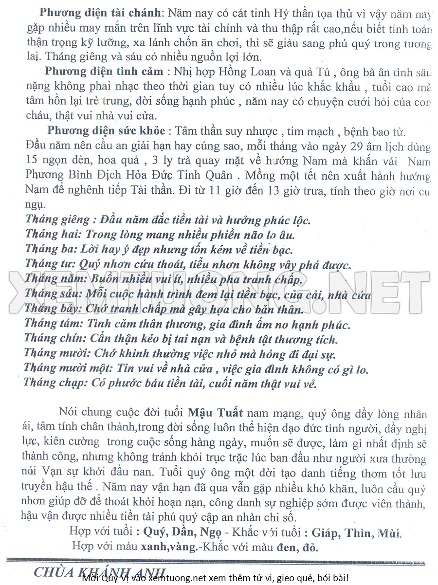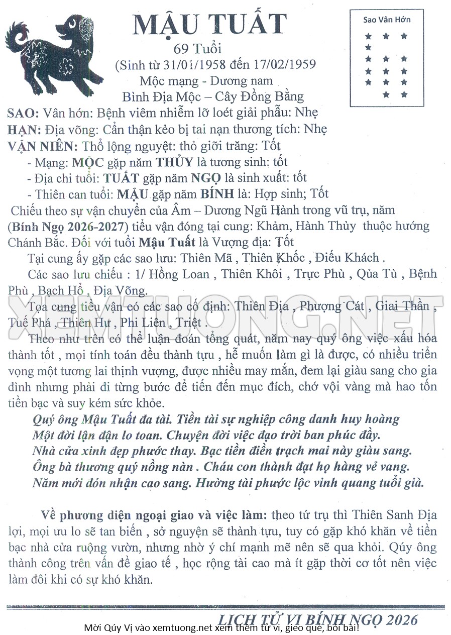 Tử Vi Năm Bính Ngọ 2026 mạng nam MẬU TUẤT