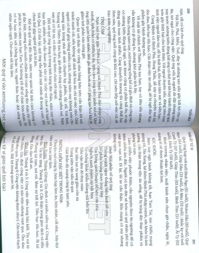 (Lưu ý: Thái Ất Tử Vi được chúng tôi scan từ sách, do đó mỗi tuổi sẽ có nhiều trang, quý vị xem xong hãy nhấn vào trang tiếp theo để xem hết phần tuổi muốn xem. Nếu quý vị xem bằng điện thoại thì hãy kéo qua lại để xem phần bị khuất.)