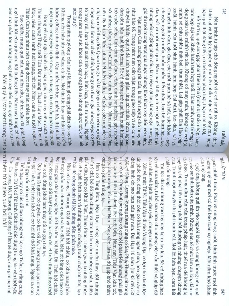 (Lưu ý: Thái Ất Tử Vi được chúng tôi scan từ sách, do đó mỗi tuổi sẽ có nhiều trang, quý vị xem xong hãy nhấn vào trang tiếp theo để xem hết phần tuổi muốn xem. Nếu quý vị xem bằng điện thoại thì hãy kéo qua lại để xem phần bị khuất.)