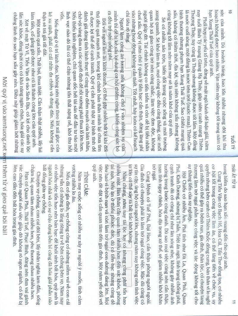 (Lưu ý: Thái Ất Tử Vi được chúng tôi scan từ sách, do đó mỗi tuổi sẽ có nhiều trang, quý vị xem xong hãy nhấn vào trang tiếp theo để xem hết phần tuổi muốn xem. Nếu quý vị xem bằng điện thoại thì hãy kéo qua lại để xem phần bị khuất.)