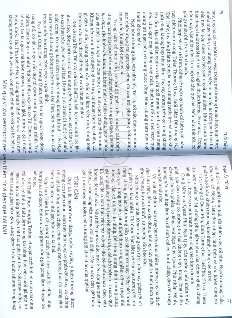 (Lưu ý: Thái Ất Tử Vi được chúng tôi scan từ sách, do đó mỗi tuổi sẽ có nhiều trang, quý vị xem xong hãy nhấn vào trang tiếp theo để xem hết phần tuổi muốn xem. Nếu quý vị xem bằng điện thoại thì hãy kéo qua lại để xem phần bị khuất.)