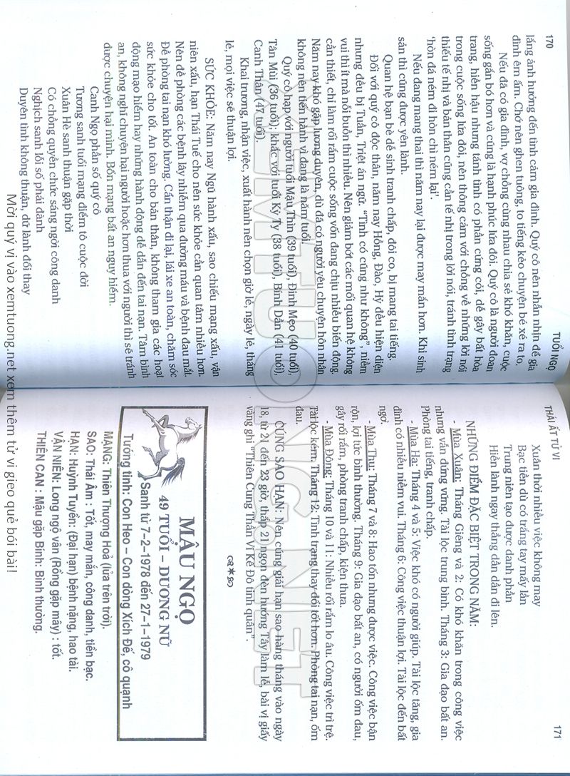 (Lưu ý: Thái Ất Tử Vi được chúng tôi scan từ sách, do đó mỗi tuổi sẽ có nhiều trang, quý vị xem xong hãy nhấn vào trang tiếp theo để xem hết phần tuổi muốn xem. Nếu quý vị xem bằng điện thoại thì hãy kéo qua lại để xem phần bị khuất.)
