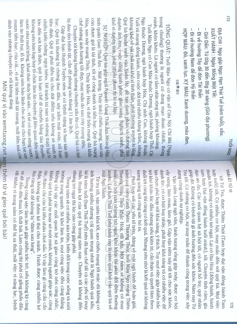 (Lưu ý: Thái Ất Tử Vi được chúng tôi scan từ sách, do đó mỗi tuổi sẽ có nhiều trang, quý vị xem xong hãy nhấn vào trang tiếp theo để xem hết phần tuổi muốn xem. Nếu quý vị xem bằng điện thoại thì hãy kéo qua lại để xem phần bị khuất.)