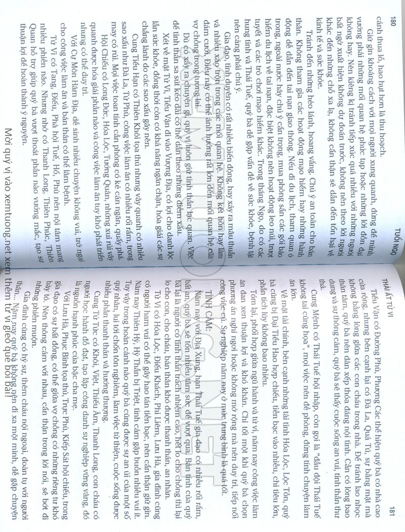 (Lưu ý: Thái Ất Tử Vi được chúng tôi scan từ sách, do đó mỗi tuổi sẽ có nhiều trang, quý vị xem xong hãy nhấn vào trang tiếp theo để xem hết phần tuổi muốn xem. Nếu quý vị xem bằng điện thoại thì hãy kéo qua lại để xem phần bị khuất.)